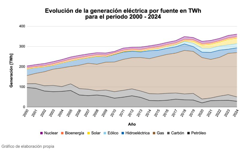 Si bien durante este periodo las energías renovables fueron en aumento, también aumentó la participación de gas natural en la generación eléctrica, ya que los privados no solo comenzaron a entrar en el mercado a través de las renovables, sino que también con proyectos de explotación fósil.
