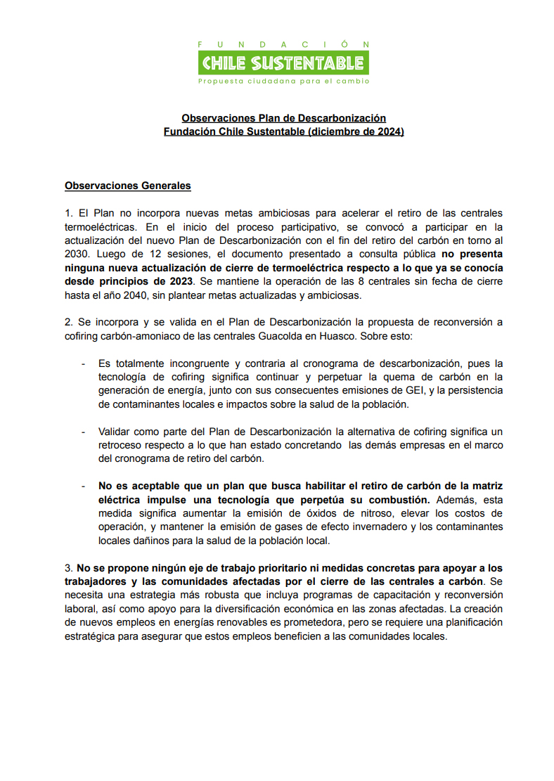Una Perspectiva del Estado del Carbón en Chile